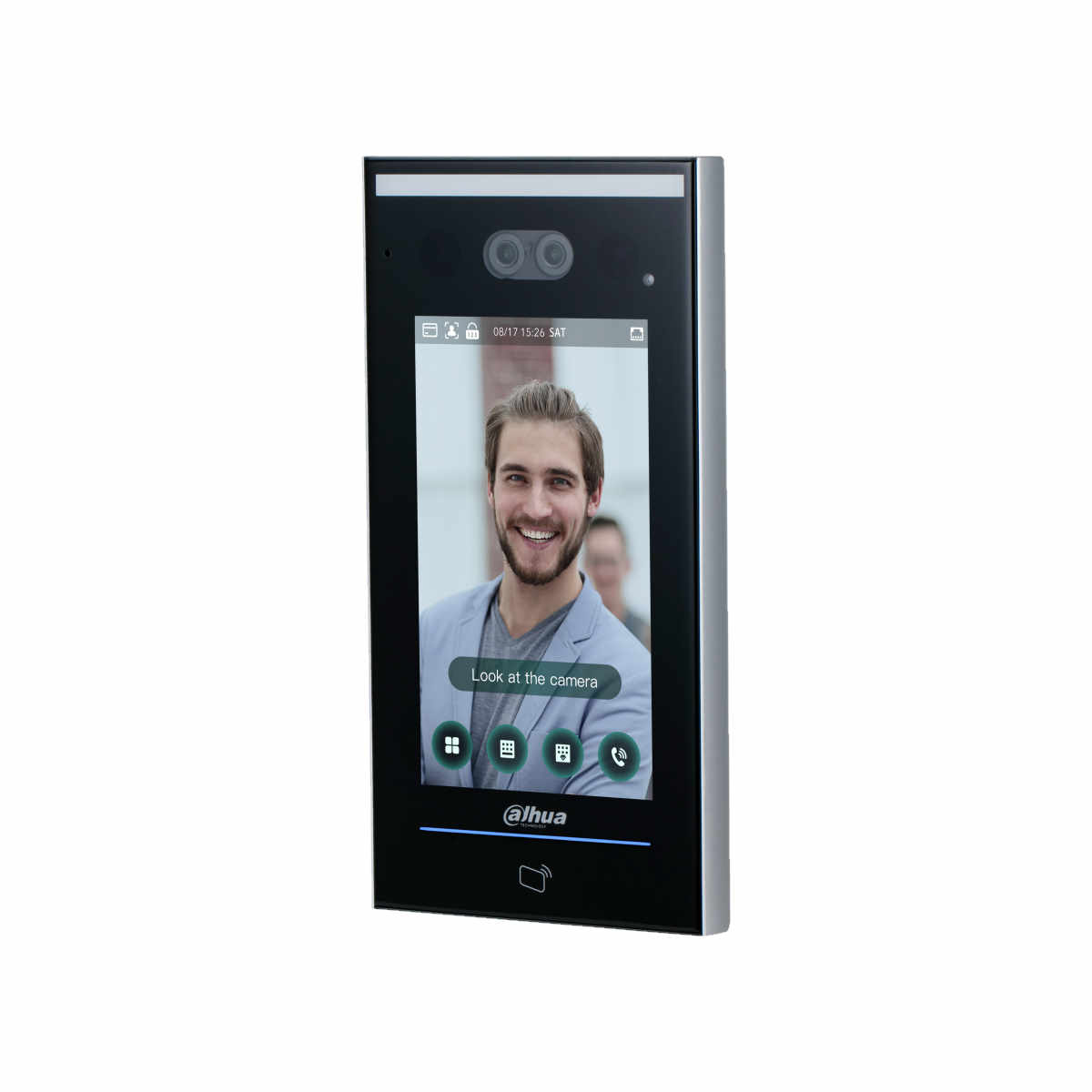 7-calowy ekran LCD (1024 x 600) Kamera 2 Mpx CMOS z funkcją WDR 120 dB Automatyczne podświetlenie Pamięć do 100 000 użytkowników, zdjęć twarzy, kart dostępowych i haseł Obsługa do 50 kont administratorów, zapis 300 000 zdarzeń Odblokowanie przez kod QR, karta MIFARE, hasło, obraz twarzy lub ich kombinacje Rozpoznawanie twarzy Obsługa ONVIF, RTSP, RTP, TCP, UDP, P2P, SIP 1 RS-485, 1 Wiegand Weryfikacja Unijnego Certyfikatu COVID (UCC)
