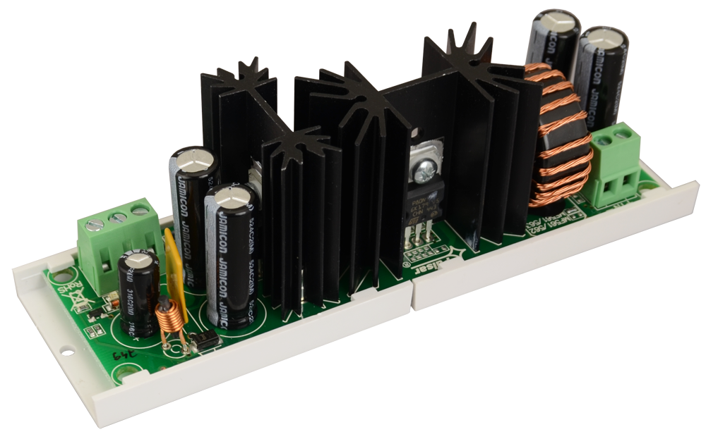 Przetwornica DC/DC podwyższająca napięcie z regulacją napięcia wyjściowego Przykład zastosowania: podwyższenie napięcia z 12V DC na 24V DC Zakres napięcia wejściowego: 9,5÷16V DC Zakres napięcia wyjściowego: 18÷28V DC Maksymalny prąd obciążenia 2,5A (60W)