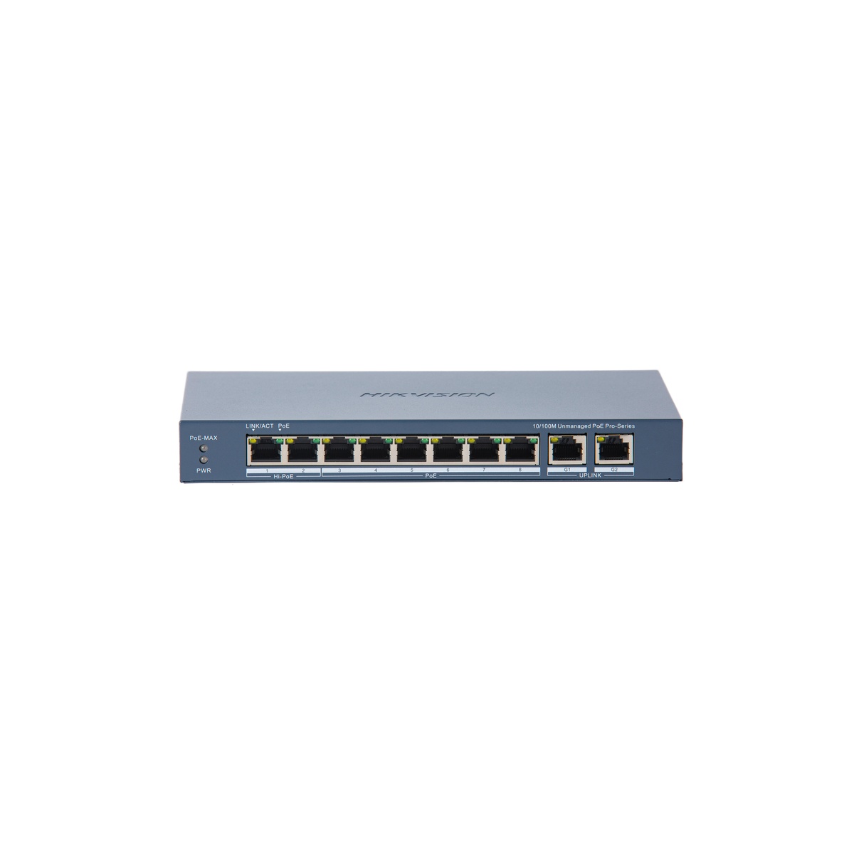 Swich PoE 10-portowy, 8 x 10/100 Mbps PoE, 2 x 1000 Mbps Uplink, 110 W, niezarządzalny,