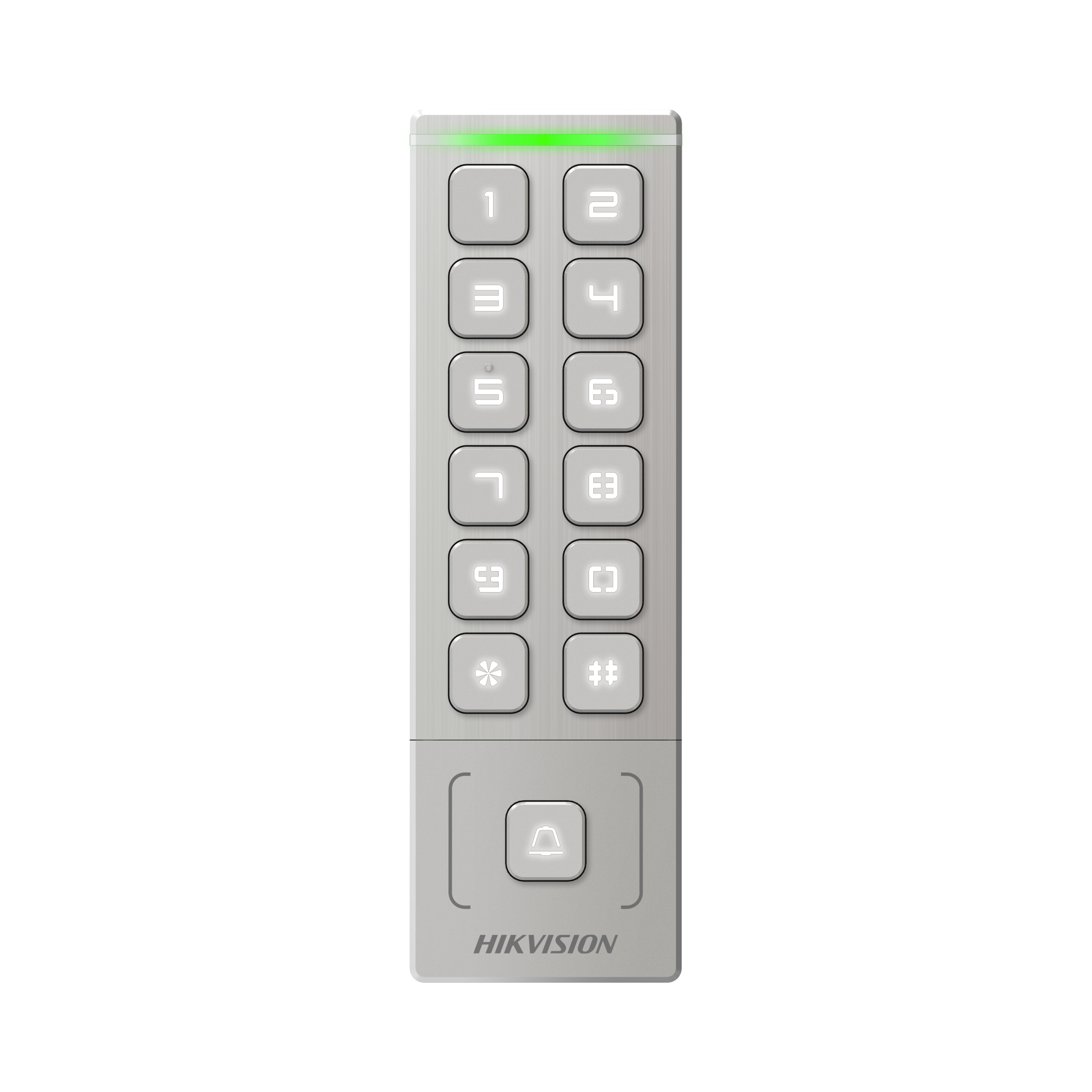 wbudowany czytnik kart zbliżeniowych RFID – Mifareautoryzacja użytkowników za pomocą: kod PIN, kartapraca autonomiczna lub sieciowa (interfejs Wiegand)interfejs komunikacyjny: Wiegand 26/34interfejsy wejściowe: 1x kontaktron, 1x przycisk wyjściainterfejsy wyjściowe: 1x wyjście przekaźnikowe NO/NC, 1x wyjście alarmowepojemność pamięci: 1000 użytkowników, 1000 kartfunkcja dzwonkasygnalizacja LEDpodświetlana klawiaturazastosowanie: zewnętrzneobudowa: klasa szczelności (IP65)zasilanie: 12V DC (zasilacz w zestawie)wymiary: 48×21,5×151mm (szer./dł./wys.)