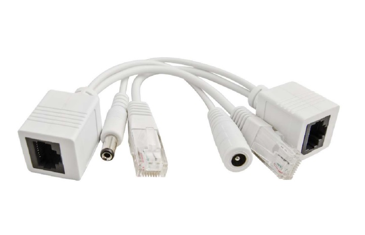 P- PoE1 adapter PoE ze złączami typu RJ45 i 2.1/5.5
