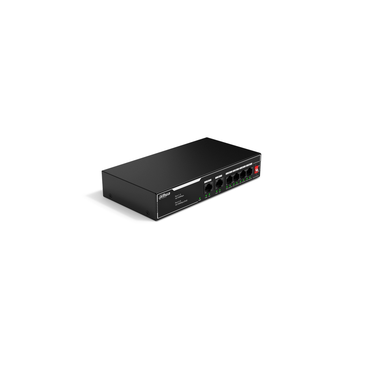 | Krótki opis | Switch DAHUA, 6 portowy PoE, 4 x 10/100Mb/s, 2 x UPLINK 10/100 Mbps , IEEE 802.3af IEEE802.3at, obudowa metalowa, 230VAC, 36W – Promo |