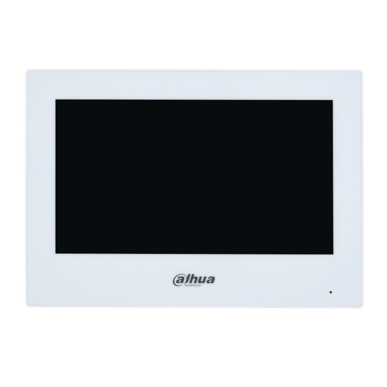 Rodzaj urządzenia: panel wewnętrzny Matryca: 7″ 1024 x 600 (dotykowa) Kolor panelu: biały Zasilanie:      Interfejs 2-Wire IP 48 V / 1.25 A Pobór mocy:     ≤ 6 W (praca) ≤ 2 W (standby) Tłumienie i redukcja echa Wbudowany mikrofon, głośnik, Wi-Fi Obsługa SOS Współpraca z kamerami IP Dahua Komunikacja dwukierunkowa Dekodowanie wideo H.265 i H.264 Regulacja jasności obrazu, głośności dzwonka i rozmowy Rejestracja wiadomości wideo w przypadku braku odpowiedzi Wykonywanie i zapisywania zdjęć w przypadku nieodebrania dzwonka Możliwość Bezpośrednia komunikacji między dwoma lub więcej panelami Zabezpieczenia : WEP 64/128-bit, WPA/WPA2, WPA-PSK/WPA2-PSK